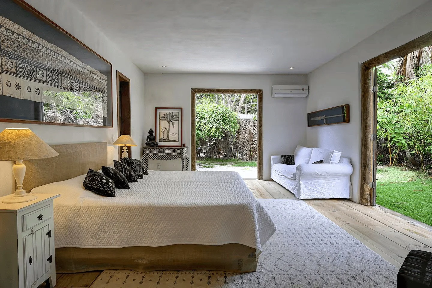Infused with soul, this suite is decorated with hand-picked objects from Africa and Bali. It offers a versatile layout with an additional double sofa bed and an immersive "open-to-nature" shower experience in your private garden.